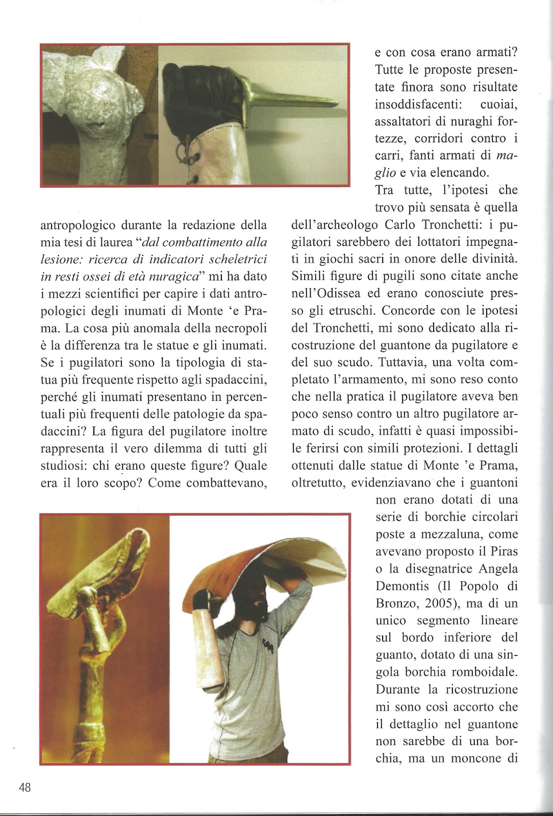 Laddove ricostruttori quali la Demontis (Il Popolo di Bronzo) o l'artigiano Carmine Piras (autore per la maggiore di ricostruzioni museali) avevano realizzato tirapugni e guantoni borchiati, io avevo proposto un'unica borchia sottostante al guantone, come si può osservare peraltro dai reperti: andate domani al museo archeologico nazionale di Cagliari e guardate con i vostri occhi!